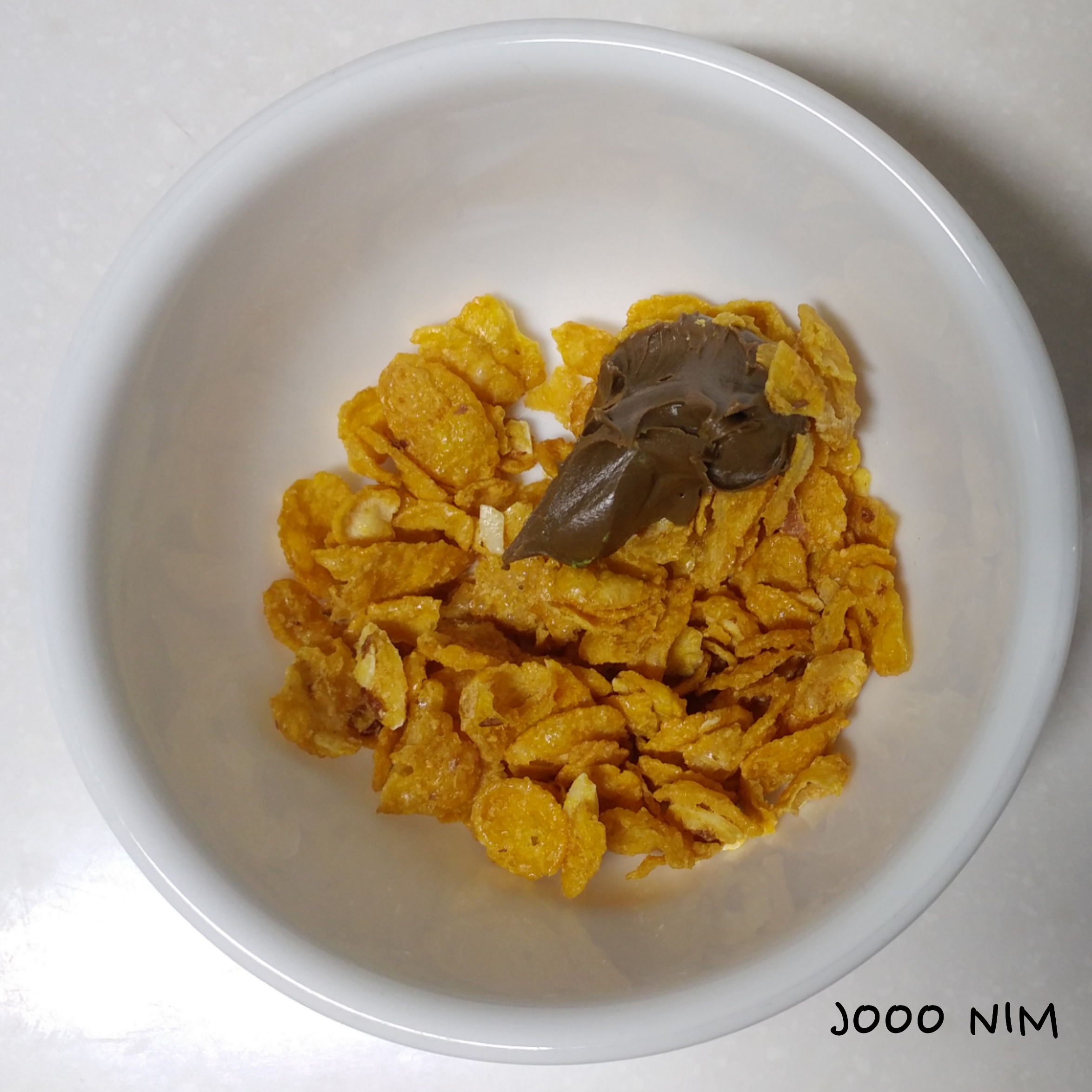 시리얼에 호지차스프레드를 넣고 버무려둔다.