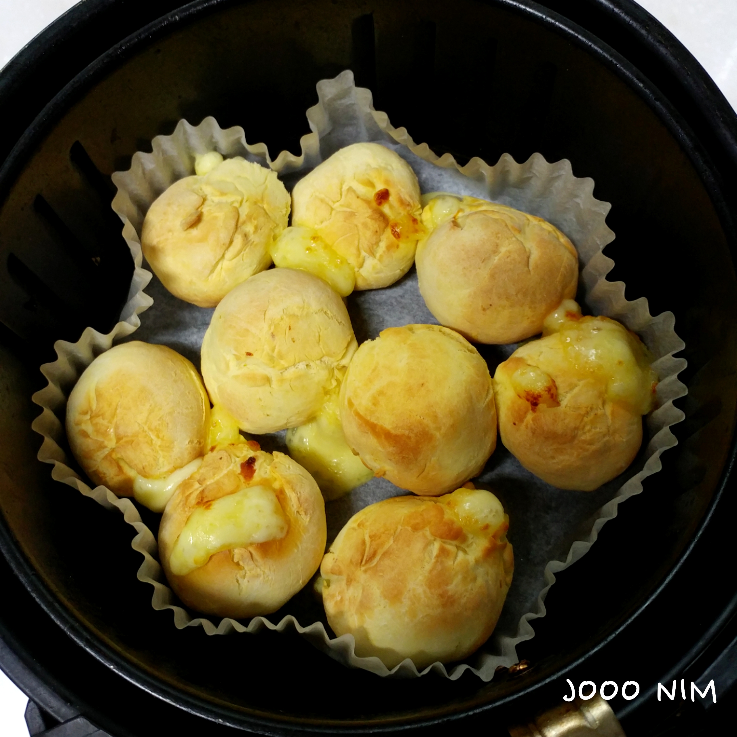 반죽 겉에 식용유를 바르고 에어프라이어 180도에 10분동안 굽는다.