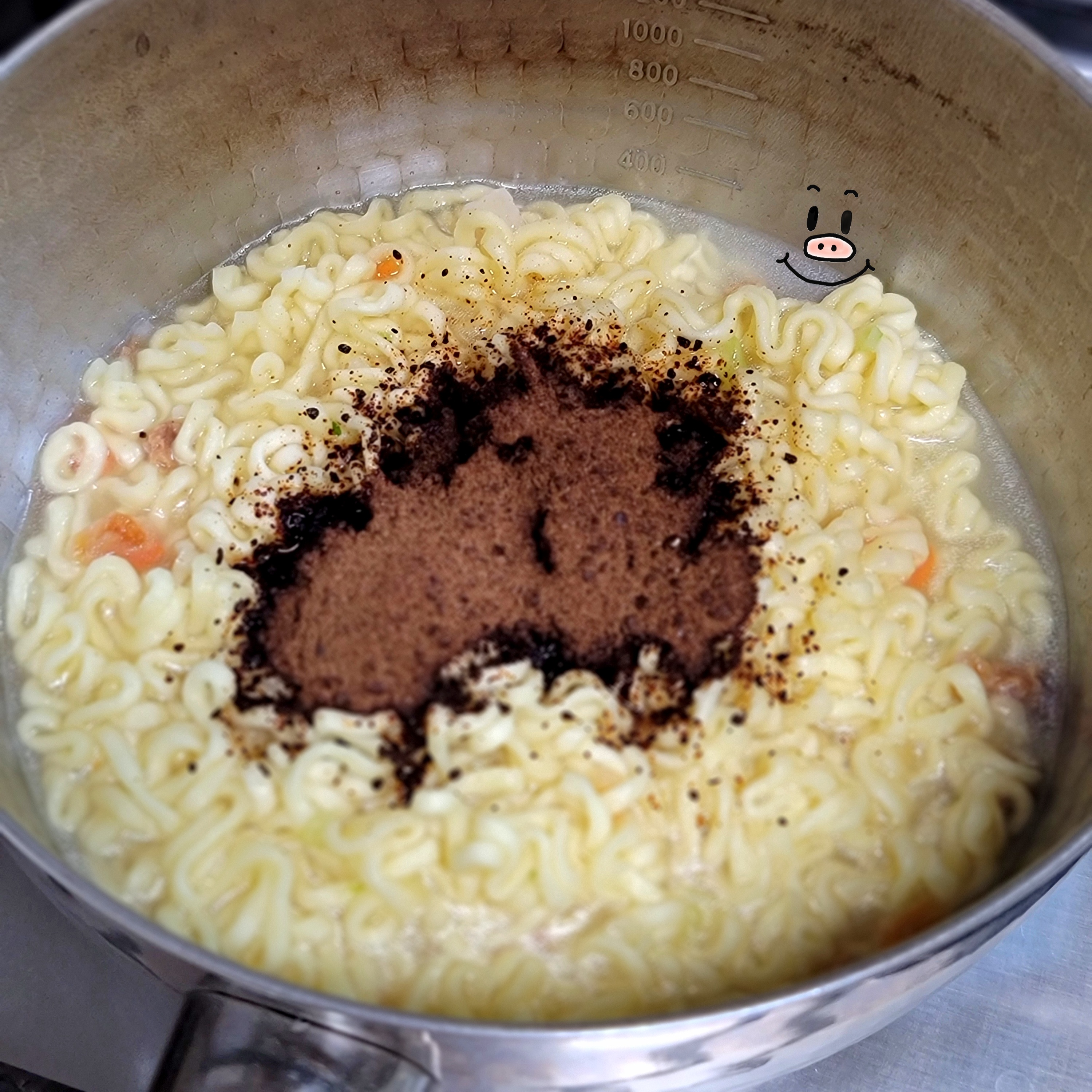 물은 자박자박하게해서 면과 스프를 넣고 2분만 끓였어요.