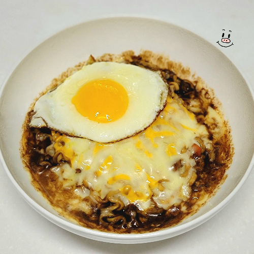 컵라면이 봉지라면이 되고, 스트링치즈가 모짜렐라 슈레드치즈가 되고, 없던 계란이 들어가는 등, 약간 다르긴 하지만, 아무튼 본질은 비슷하니까 대충 흐린눈^^